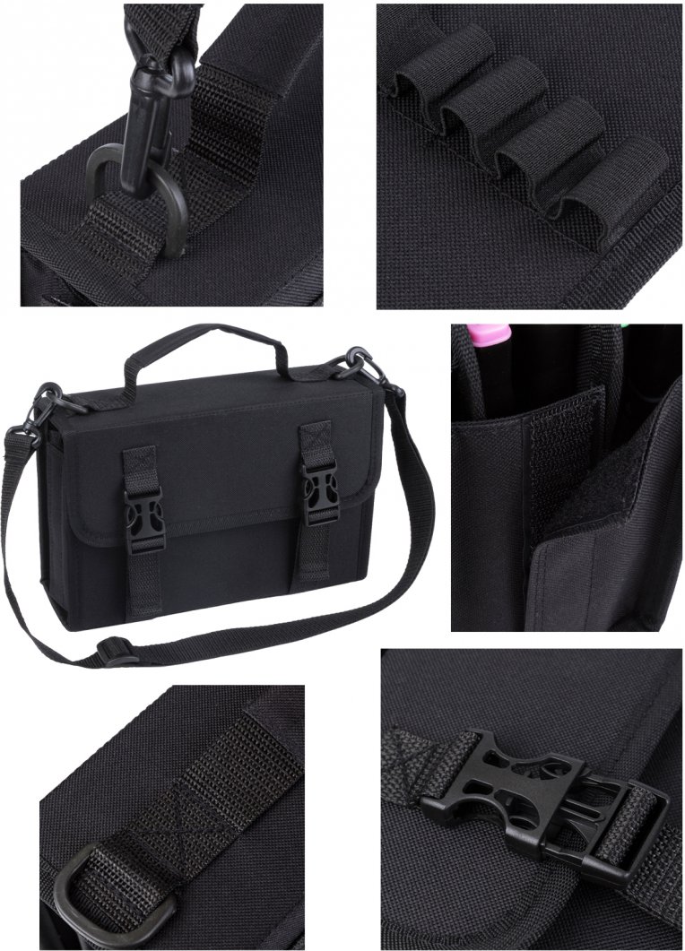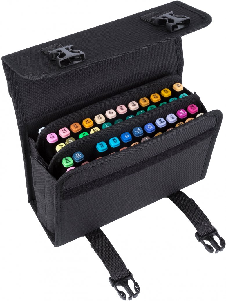 Съемный регулируемый плечевой ремень позволяет брать набор маркеров для скетчинга с собой на занятия, в путешествие или прогулку.